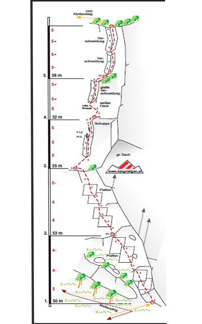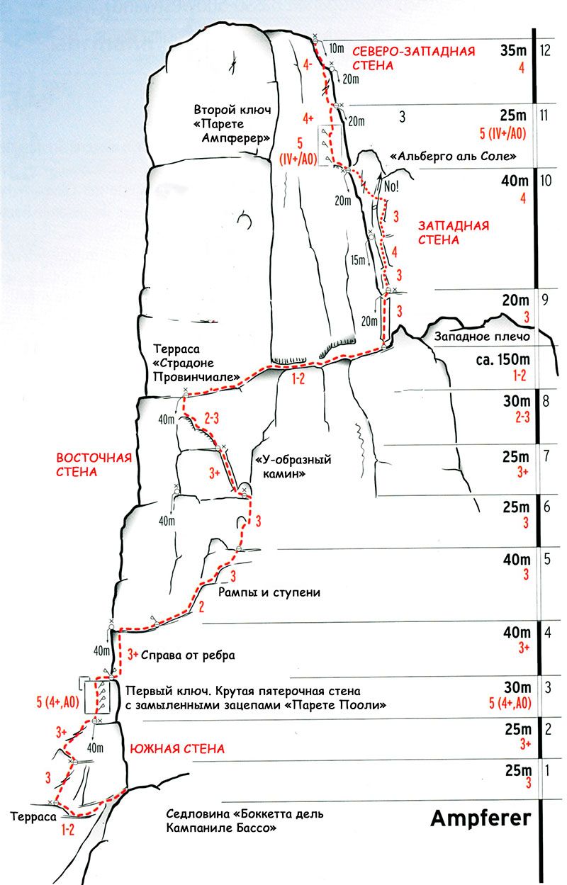 На ее вершину оборудованы несколько мультипитчей сложностью 5В-6А и длиной от 3 до 5 веревок, до 120м.