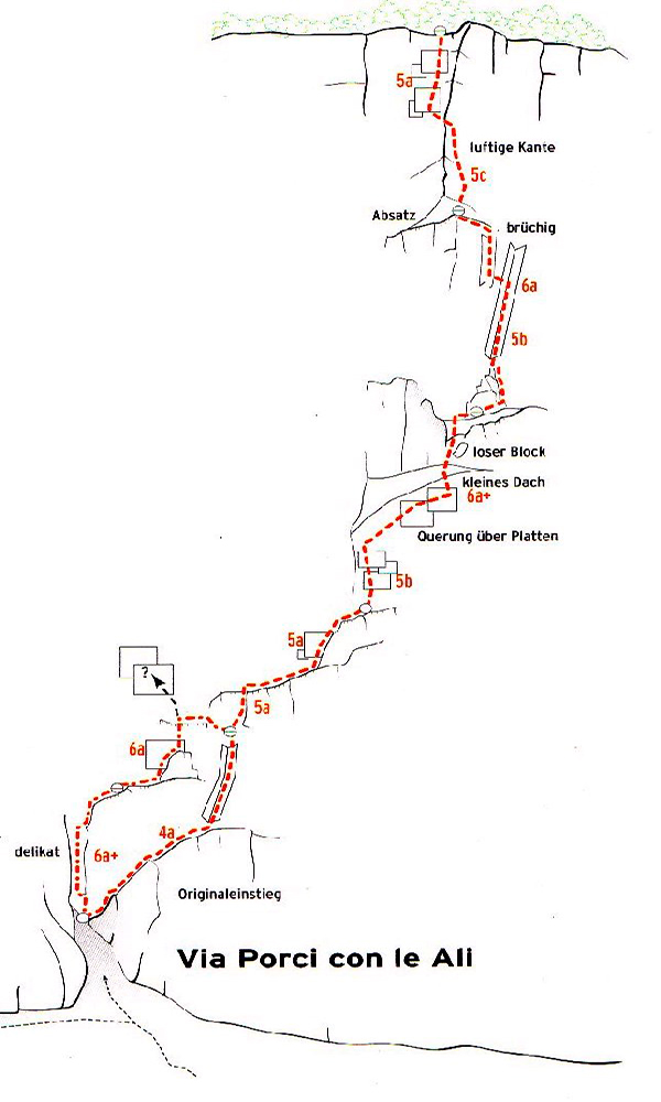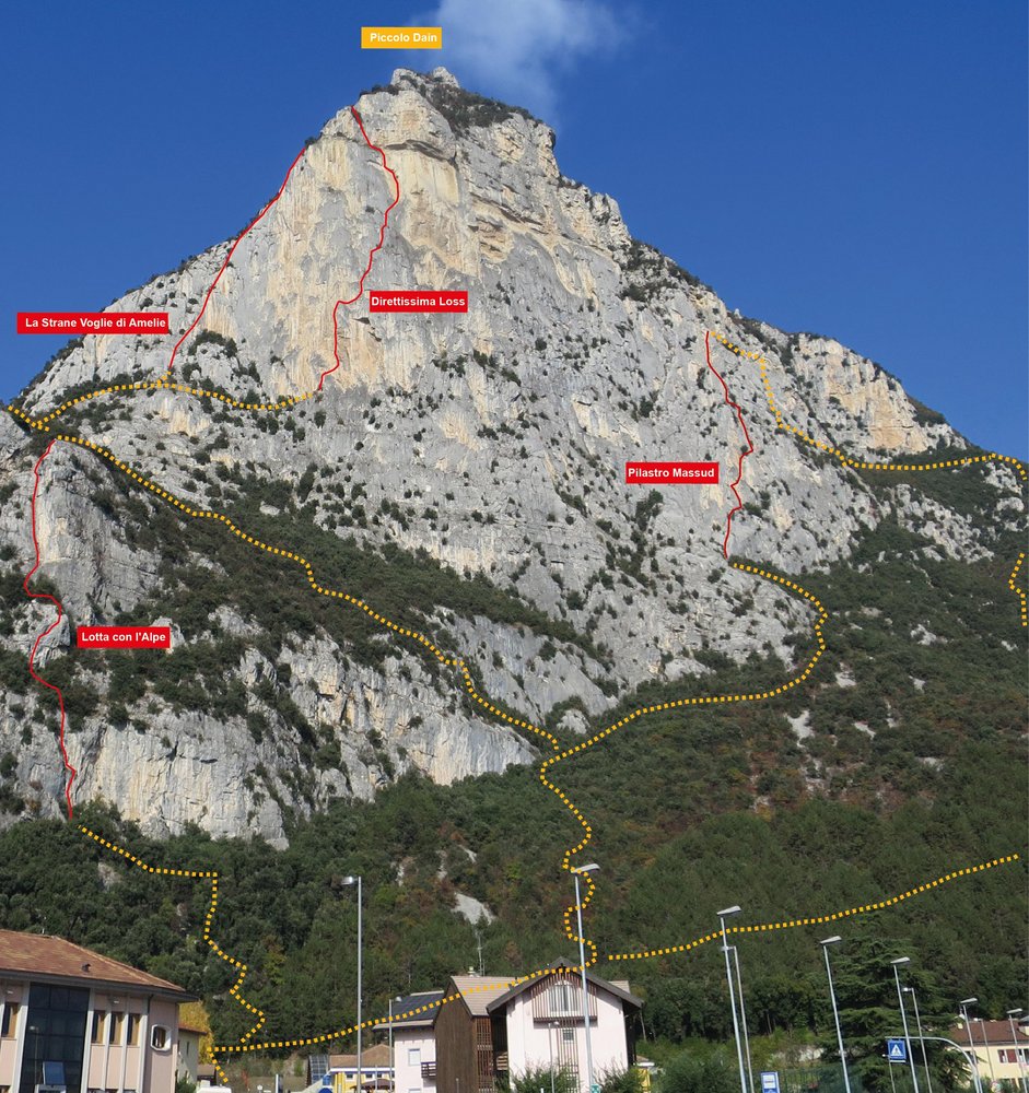 Гора Piccolo Dain расположена в верхней части долины Сарка и требует подъезда на автомобиле. Подход под маршрут тоже не близкий - это оборудованная тросами тропа. Но красота и логика маршрута, а также великолепная порода делают это восхождение очень желанным приключением.