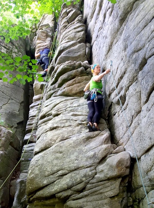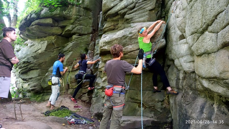 Четверо курсантов осваивали технику скалолазания. Также, попробовали работать с закладными точками страховки.
