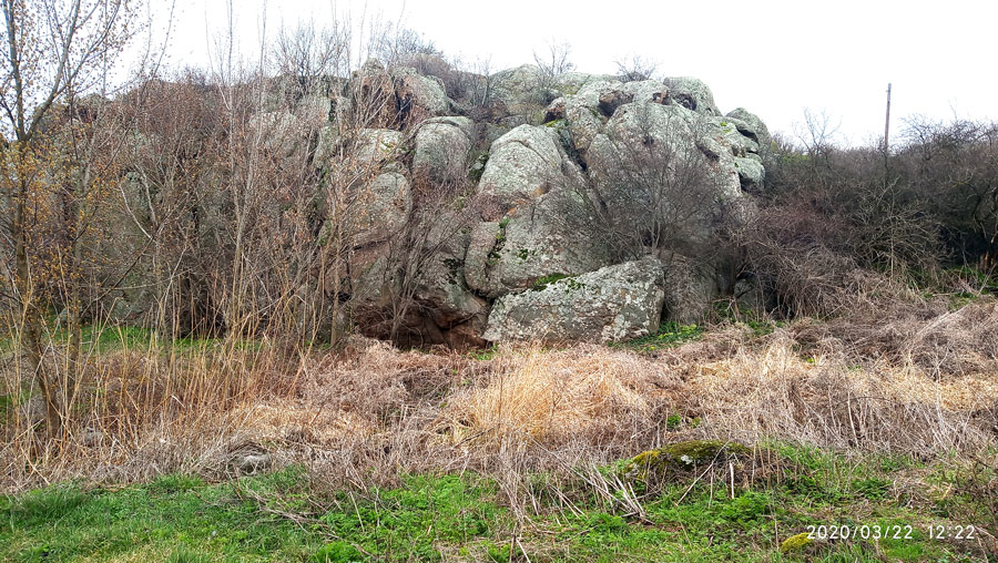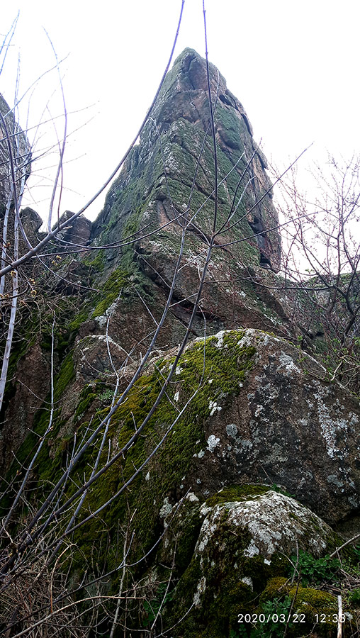 Скальный массив из двух отдельных башен высотой 10-12м.